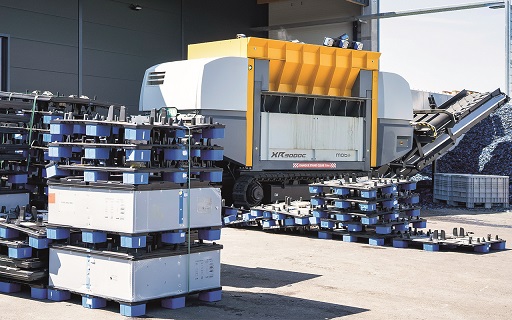 Picture (by UNTHA shredding technology GmbH): UNTHA XR3000C mobil-e shredding plastic-metal composites at RDG.
